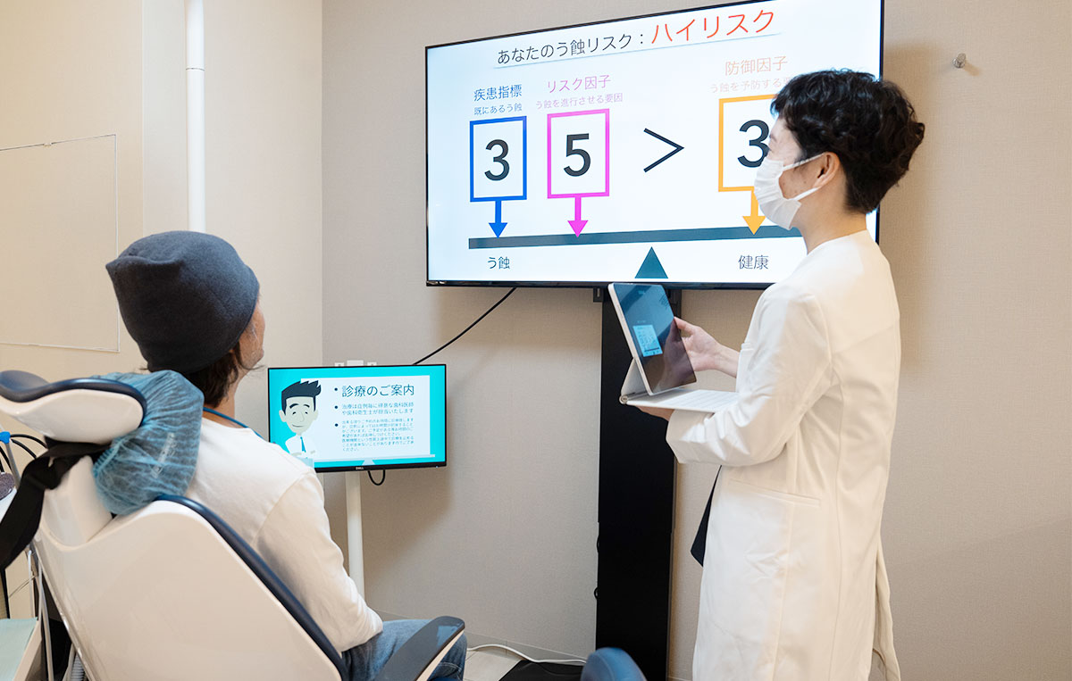 そして虫歯の原因になるリスクを減らすためにご自身でのケア方法のプログラムを一緒に作成します。